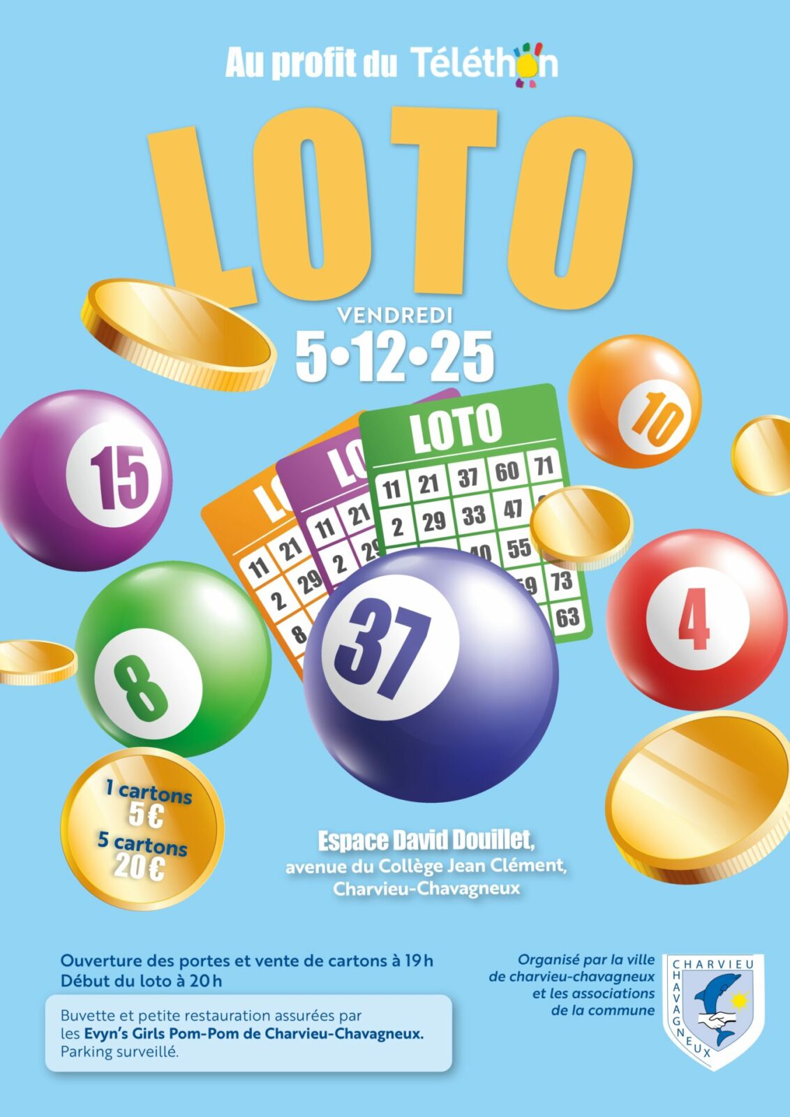 Ne manquez pas le Loto au profit du Téléthon qui se déroulera le vendredi 5 décembre 2025.